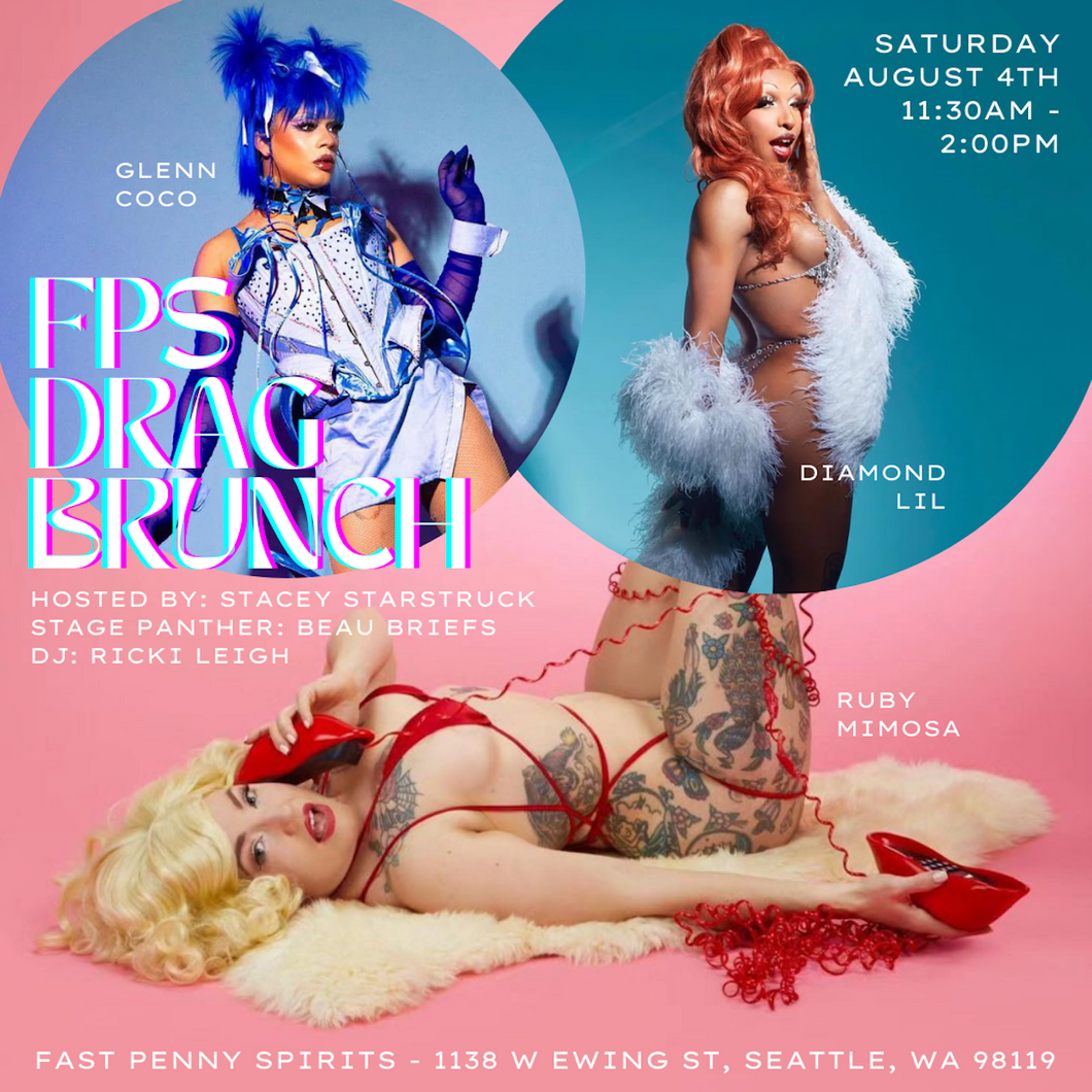 Get ready to sashay into summer with our sizzling Drag Brunch at Fast Penny Spirits! Delight in delectable bites, sip exquisite Pride cocktails featuring Astraea Spirits & Amaricano, and bask in a show that radiates the heat of the summer sun. Hosted by the fabulously sassy Stacey Starstruck, featuring performances by Glenn Coco, Ruby Mimosa, & Diamond Lil, alongside stage panther extraordinaire Beau Briefs. DJ Ricki Leigh spins the tunes, ensuring the good vibes flow throughout. Join us for a stylish brunch where these fabulous queens will dazzle and entertain! This is a full 90-minute show with food and cocktails included.
